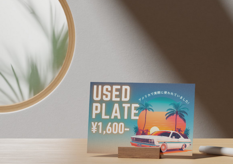 実際に使われていた車のナンバープレートを販売・紹介するために制作したPOPです。